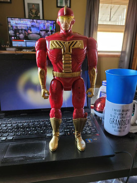The figure stands at about 4 inches tall and has 15 points of articulation. It was base coated with Krylon Primer and then painted with Citadel Acrylic paints. The red chest gem was found in the craft section of wal-mart. The power sphere base was constructed using half a power sphere and lego bits. It was then painted with Krylon sprays.