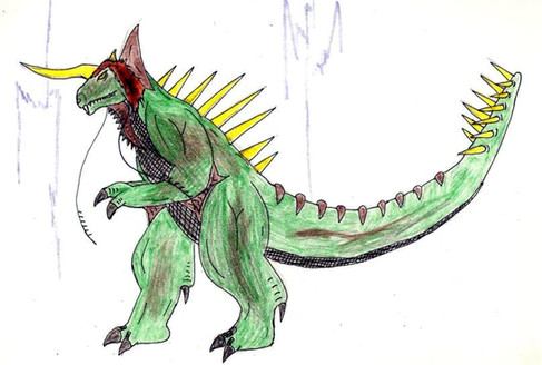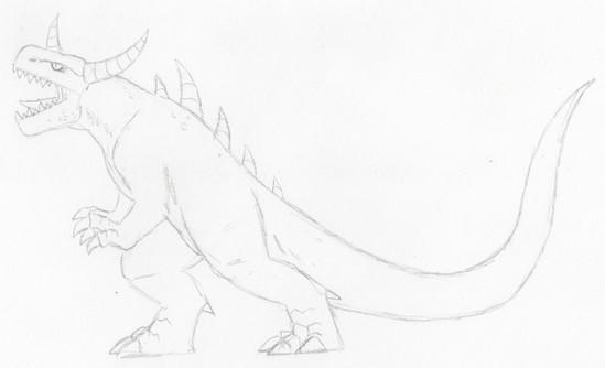 This is my original kaiju, Azrael. He is technically the "Godzilla" of my roster. However, he hasn't seen a lot of action anywhere. He is, however, being planned for a project that is on the hush hush side. You'll have to wait and see what is going on with that.Azrael's powers include firing a powerful Fel Beam, a beam that is composed of both fire and shadow, making this able to bypass single type resistances. In addition, the large horn on his head is capable of emitting a bright flash to stun enemies, his horn and elbow blades can become super heated, and he can surge shadow energy from his body, either pulsing shadow energy through a foe or releasing a shockwave from around him. In addition to all those powers, Azrael has powerful regeneration, is agile and strong, capable of burrowing, and swimming at fast speeds.