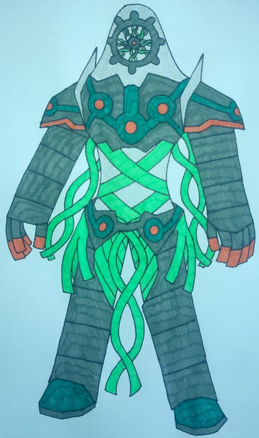 As Calumna began to tug on Aranthos’s head, he suddenly felt a sharp pain run through his entire body. An explosion of purple energy had smashed into his back, causing him to release his arachnid foe. The chameleon’s tongue reeled back into its mouth and the Beast turned to face the new arrival. Standing across the battlefield was a large, humanoid monster... But something was unique about it. It appeared to have the qualities of a dolphin!
