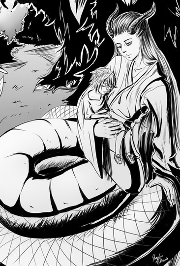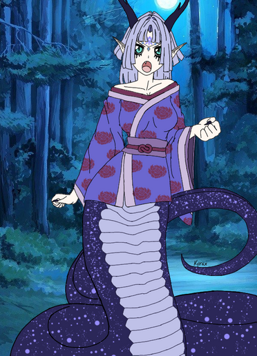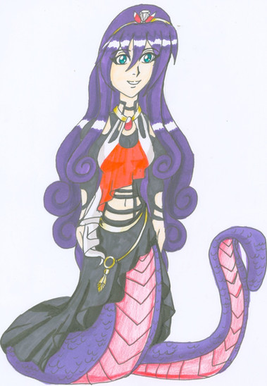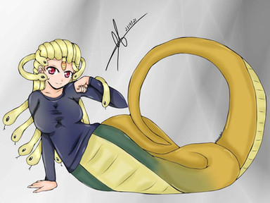 This is my oc for the anime/manga So I’m a spider so what. Initially her mom was suppose to be dead as I said in the post of my oc with the main character. But I am reconsidering and still haven’t decided yet.My oc is half gorgon and half lizard man. Her mom is half gorgon and half lamia. Both are snake like creatures. And she has a half brother who’s full lamia. They share the same dad. I THINK I might draw him later.