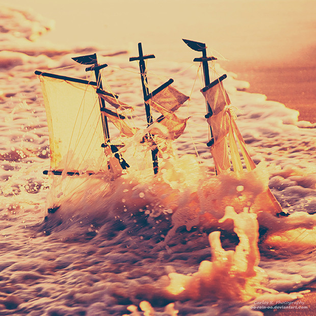 This makes me think of the Jolly Roger in Neverland; the sea and sky look otherworldly. Very nicely done.