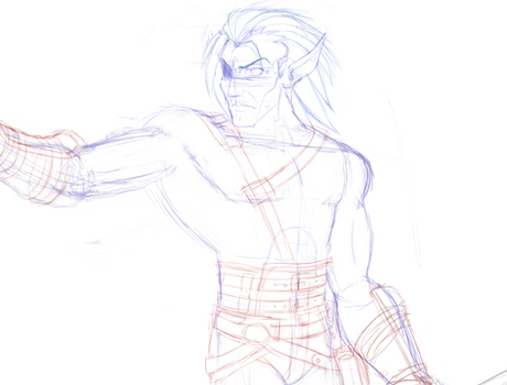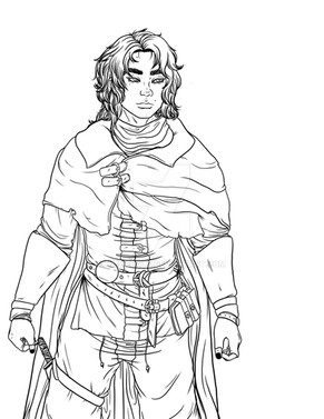 Fjord Stone from Critical Role activating the powers of his sword, Star Razor.Line work for an illustration I'm working on.