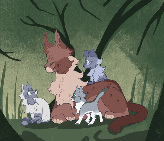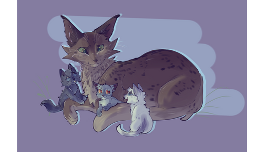 guys I love thrushpelt, hes just a good boyThis is him telling the kits a late night story, waaay past their bed time, but blue doesn't mind : )
