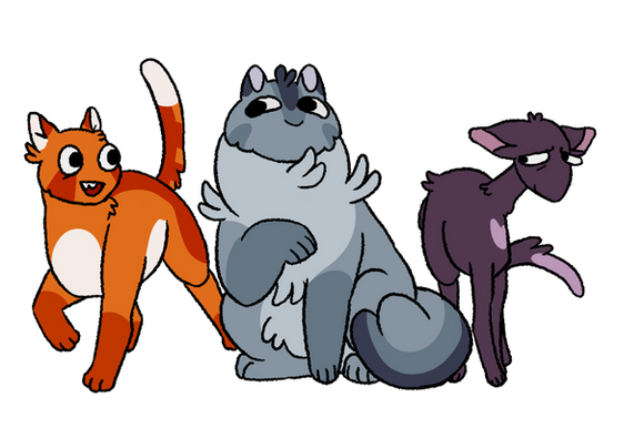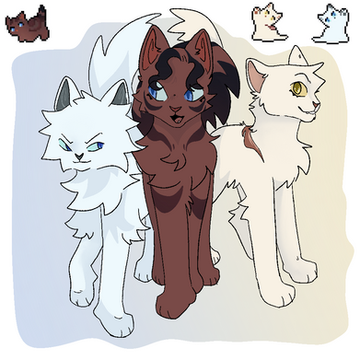 More warriors designs for animatics that I will never make :')Characters are Jagged Peak, Clear Sky, and Gray Wing.