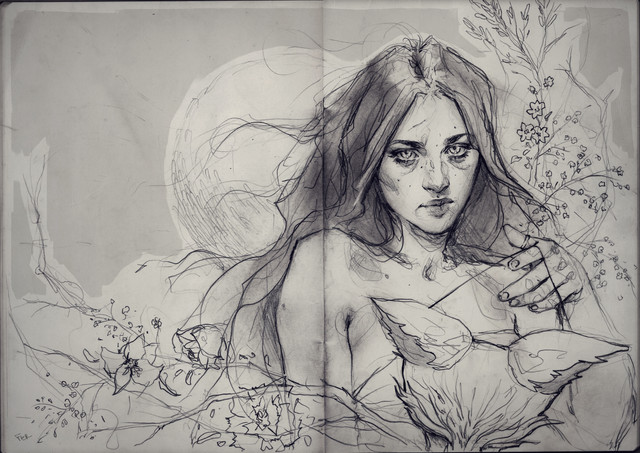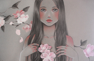 #august #conceptual #digital #digitaldrawing #fruit #girl #illustration #mixedmedia #nature #nude #peach #peachtree #portrait #summer #tree