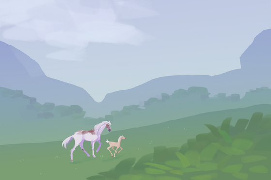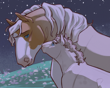 The moon sat high in the sky and illuminated a skinny young filly as she picked her way through dense undergrowth. The forest she’d been traveling through seemed to have no end, and she was ready to give up. What did she have left to live for, anyway? The fire replayed in her mind with every step she dragged across the dirt. One minute she was sleeping peacefully beside her mother, and the next everything turned black with smoke. ‘Run,’ her mother had told her, but where was her mother now? After everything had calmed down, the filly returned to their home, but she couldn’t find her mother within the charred remains of the old barn. The filly cried so long she hurt her throat, and hadn’t been able to make a sound since. Without her voice to call with, the filly felt helpless and completely alone, so she started walking and hadn’t stopped since.