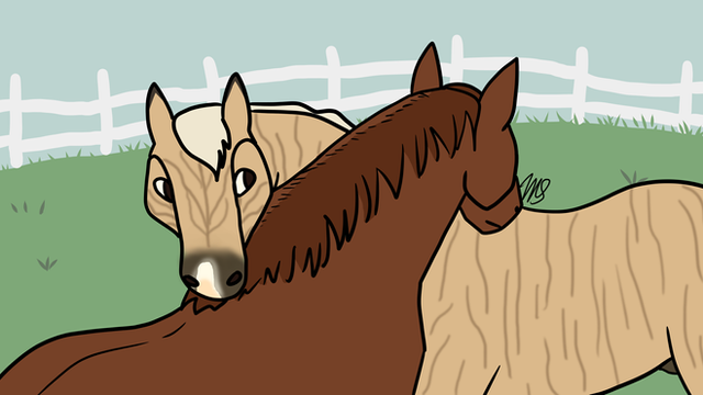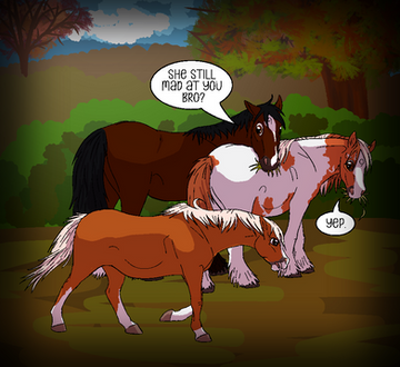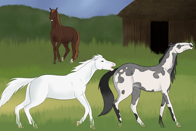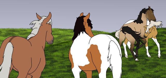 Fox Mill Year 20Tribble is being introduced to the two older colts, Bing and Champ. Champ is very interested in the new foal, but Bing is like his father in that he doesn't want to share his friend.