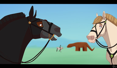 The early morning air felt great to the Fox Mill team. Jess with a yawn headed to the back to the trailer, so Nettle and Ghost could come out for breakfast. Jess had arrived yesterday with her sisters, Alice and Rose, and Ben came along in case anything broke. Ghost wouldn’t be competing, but she was a welcome companion for Nettle during the long trailer ride over. Their “camp” was set up among other camps of trailers, cars, and made-shift fencing for some of the horses. Jess taking a seat on the trailer’s large wheel looked out into the distance where the obstacle course lay waiting. Soon she and Nettle would be out racing through the course.