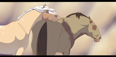The first obstacle the pair encountered was a large log that Nettle cleared with ease. It was a confidence boost for the both horse and rider as they made their way through the unfamiliar course. More jumps and shallow ditches where encountered and easily overcome before a flash of heat stopped Nettle in his tracks. The perlino stallion reared and quickly backed away from the flames. The flame thrower was something new to Nettle, who’d never before seen fire. Jess attempted to calm him but with his rising nerves, Nettle became more and more unreachable. His hoof hit the ground once then again as he started to paw in agitation at being told to go forward when all he wanted to do was go back. Finally he gave in and skirted as far around the flames as he could to get passed them. With his heart still pounding in his chest, Nettle approached the next obstacle. Another ditch stood between Nettle and the end of the course, but to Nettle fear filled eyes the ditch looked like a bottomless abyss. His panicked mind pictures him falling and falling with no end. Then he pictured Jess falling with him and that snapped his mind back to reality. Nettle had a job to do, and he wouldn’t let any abyss deter him from getting Jess to the safety of the finish line. With a mighty leap, the stallion cleared the abyss which in actuality was little more than a dried creek bed.
