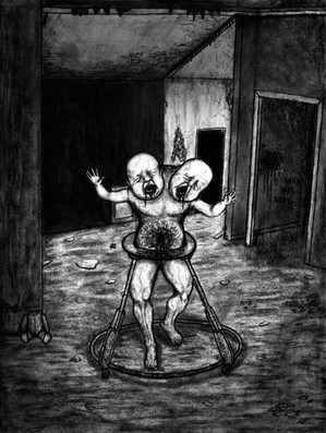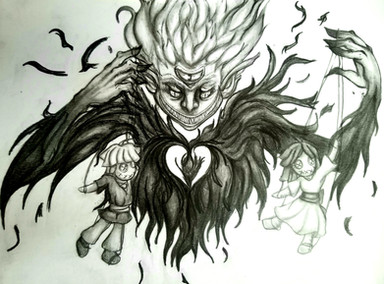 This is artwork for encounter #8 of the encounter short stories for my series Blackhaven Institution which is written below. The day Blackhaven Institution a house for orphaned children and unwanted infants burned to the ground mysteriously one day, the souls of those trapped inside became corrupted by an evil that warped them into demons that dwell in an alternate Blackhaven Institution.There they await those who are dragged into this alternate world by an unknown evil. The encounter with this nightmare “Jack In The Box” takes place in the "Orphan Wing" as follows: