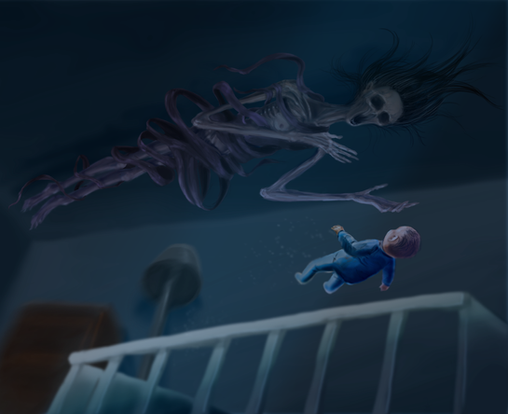 The mother began to swiftly start cleaning out and apartment and disposing of all incriminating evidence before calling the police and playing into her ploy pretending to be overwhelmed by the sudden loss of her daughter. The police and investigators knew something was wrong so they planned to return the next day for further investigation, taking away the lifeless body of the daughter. The mother thought she had won and went out to celebrate shooting up for one last time in her favorite spot. She shot up more than she should have, and after a brief nap of sorts found herself stumbling home in a daze. Something seemed different after she shot up, not like a usual high but her surrounding seemed much dimmer and the streets empty. A dark ambiance rung in her ears, she believed something must've gotten mixed up in the drugs and this must've been a bad trip. There was an overbearing feeling of dread as she opened the apartment door... The apartment was reverted back to its messiest of states, darker than usual and coated in an ominous fog. Suddenly a black stain appeared in the middle of the floor, melting through the floor and creating a hole. The mother back stepped confused and frightened. A faint distorted shrieking echo grew louder as something was emerging from the black pit. What emerged threw the mother in absolute shock, absolute horror, absolute terror... Choking the mother and bringing her down into the black. Why was she down there, why was she down there, what has she become. Both once neglected, their resolution could only be found together in the abyss...