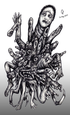 In the alternate Blackhaven The Corrupted represents the general corruption that warped and distorted the bodies of it's victims. With features either being extremely randomized independently or particularly distinct among what would be called a sect. A sect is a group of individuals that perished previously close bye that are now corrupted and share very similar distinct features. In Jack's case he inherited a sect of the corruption that made him and the infantile demons around him have these distinct tendril-like appendages and features. Features vary throughout the demon sects in the alternate Blackhaven. Among a group of the corrupted there always seems to be an alpha demon. One hit with the most potent corruption making them significantly more powerful than the others in the sect. Jack became this alpha demon and acts as a guardian and pack leader to the corrupted in his sect. Powerful and wise his mere presence and expression brings an atmosphere of intimidation. Yet unlike some of the other alphas of sects, Jack rarely acts on his victims. Instead he points and lets those in his group deal with them and feast. Though oddly not as violent and provokable as many of the other horrors that dwell in the alternate world. If any in his pack are ever in harms way he will personally deliver a ruthless execution with his set of thick blackened hands.