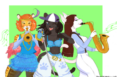 Samantha (the cat) can be sexy without trying, much to Chi's displeasure. Oh, and those thingamabobs on Sam's hands are castanets!Chi uses her Chihuahua trembles to be a faster drummer. xD This was a lot of fun.