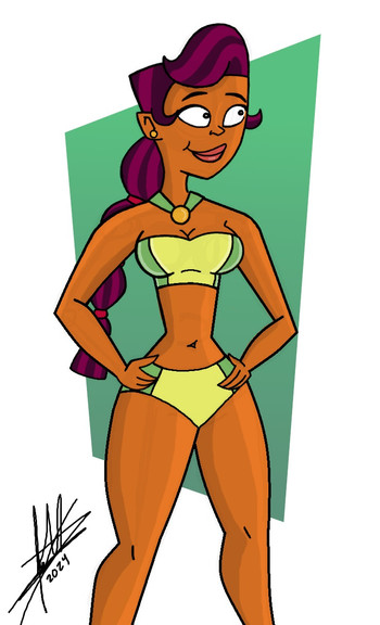 I've wanted to draw this character for a while. She was one of my favourites in World Tour as you watched her character develop and become... 'not crazy'. Though when she returned in All Stars she was literally just played as a joke and right back to crazy town.Considering how she is tremendously strong in the show, i would expect that she works out and has a bit more upper body muscle. Of course I had to stay close to the TDI art style, so she doesn't have much, but at least her arms aren't as slim.