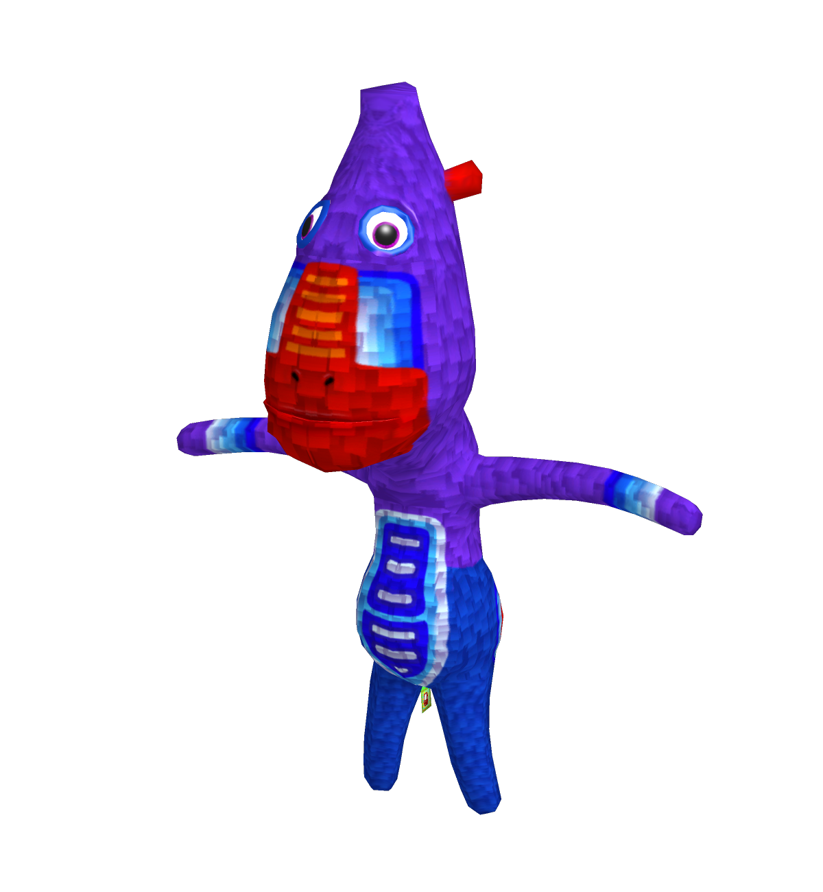 So this guy actually has a very odd story. You may think to yourself "why did you even post this? he has like 12 faces" You sir would be very wrong! and here is why. I got inspired to make this after watching Transformers: Age of Extinction. I saw how the Decepticons transformed where they would turn into a bunch of little cubes and thought it looked really cool. So what if missigno did that to move? he's just a block, and is a glitch...so you'd think that's how a glitch would move right? all wonky and split up. So every place you see a colour touch a corresponding colour, that's once block. Think of it as a very odd tetris panel. So when we rigged it each cluster of blocks moved individually. Sadly we never got around to animating it, but I though it would have looked pretty cool if I ever got around to it. I may still end up doing it, but i find that rather unlikely.Fun fact, the texture is 4 pixels (2x2)