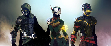 finally finished this drawing i started last february..........Just my guardians in a gundam-like scene