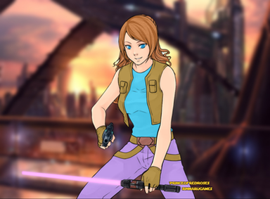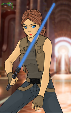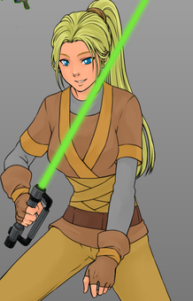This is Sola, my character from a friend's Fantasy Flight Star Wars tabletop RPG campaign. An orphan raised by an old Jedi, she aspires to learn the ways of the Force and fulfill her destiny in a time when the Jedi Order is fractured.I'm finally free from school for at least a bit, so it's back to practice. There's not much to talk about with this one - everything when basically as planned, with the exception of not doing a second layer of inks for the sake of time. The real pain point was probably the lightsaber. I'm horrible at mechanical design, so figuring out a hilt that looked okay was a bit of a hassle. Same with the blade - CSP doesn't have a way to make glow effects, so I improvised with the airbrush and straight line tools.