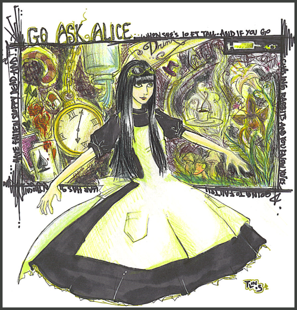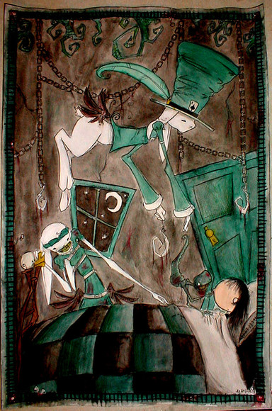 ItΒ΄s kinda Alice in wonderland style ,or something, it reminds me beetlejuice too, good art is awesome!