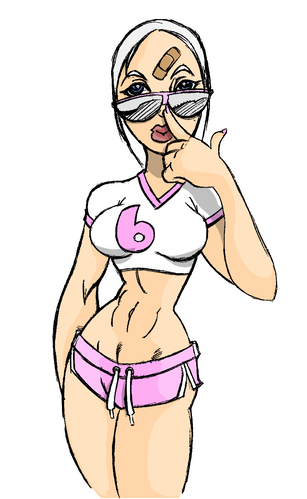 Glad you like her. I really enjoyed playing with the colors, adding some finer details, and working out the background. I've never done anything like this before, and learned a lot from it. Thanks for allowing me to do so, and I might try some more of your lines in the near future.