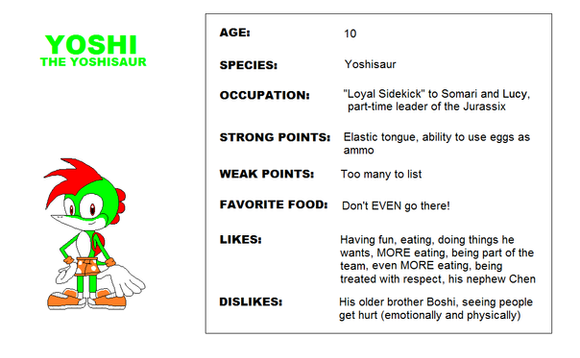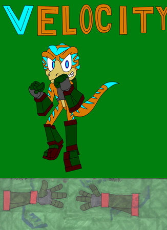 I really like how Velocity look's, it's just so cool, and his colours go really well together. ^^ It also makes me wonder how you came up with the idea to do mobian Dinosaurs or Metrosaurs? I think there called? ^^