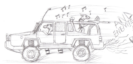 The sun beat down on Borken as he sped along. He was noticing things now that the sheer abject terror he had overwhelmed him the night before had settled into a deep, underlying dread that couched at the bottom of his soul like a caged animal. The things he noticed was that the engine, positioned just behind his head was extremely loud and monotonous. It also sent continuous, numbing vibrations though everything in the vehicle. He couldn't feel his hands after the first hour or so. Dust was another big thing. Dust was thrown up by the wheels and seemed to concentrate itself on the cockpit. At least there was a roof though to shade him from the unrelenting sun.