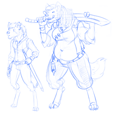 Dusk was kind of the first of the gnoll couple I thought up. She is rather reserved for a gnoll and still has a lot to learn about twisting the fabric of reality to do her bidding. She has a cool quad bike though, I'll have to draw it at some point.