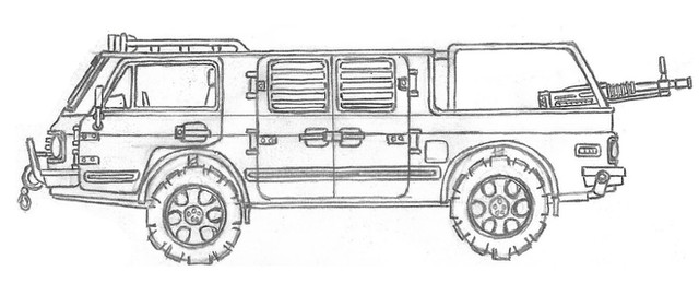 you did a nice job on the vehicle. It looks more like a military armoured 4wd humvee but more customized .