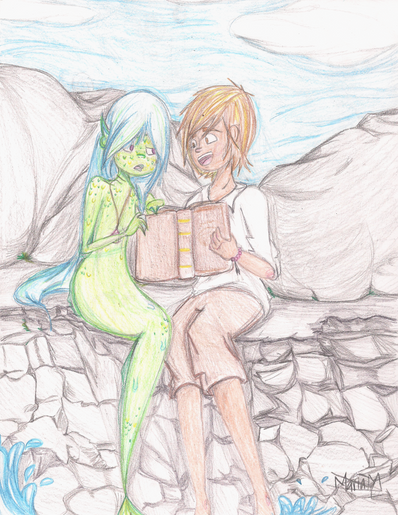 "I could listen to your voice forever."Fayle will often drop by Reuben’s favorite reading spot in order to listen to her explain the different stories she is reading. Who knows what book it is, but it seems that the siren is being lulled by the human this time around…