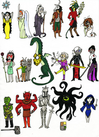I drew them using my own imagination which is quite limited considering half of them look quite similar with just some minor differences. I drew them from left to right, bottom to top. was running out of ideas near the top. The bard is way too big.Top Row: