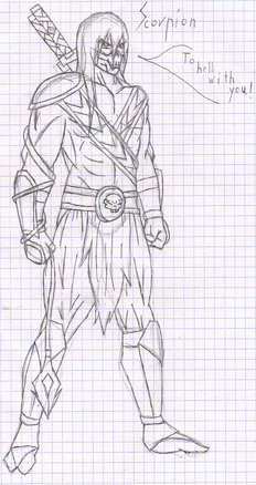 This is the Two hundred and Fourteenth of many drawings I will be submitting. I lost all my trophies and save files on my PS3 and on my quest to reclaim my former glory I have decided that I will be drawing my favorite character(s) from the game that I beat once I receive a platinum trophy. Every drawing will include the name of the game in the description and my favorite quote by that character in the game as well.Mortal Kombat
