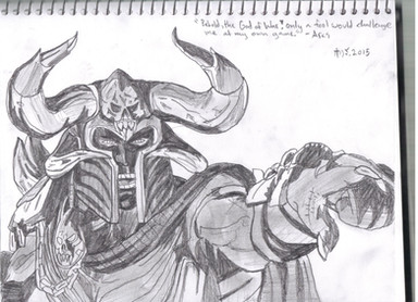 This is the sixty-fifth of many drawings I will be submitting. I lost all my trophies and save files on my PS3 and on my quest to reclaim my former glory I have decided that I will be drawing my favorite character(s) from the game that I beat once I receive a platinum trophy.Every drawing will include the name of the game in the description and my favorite quote by that character in the game as well.God Of War: Ascension