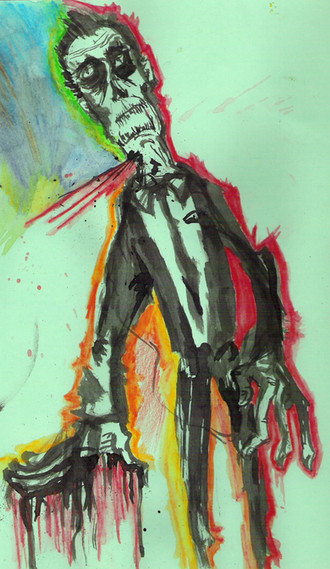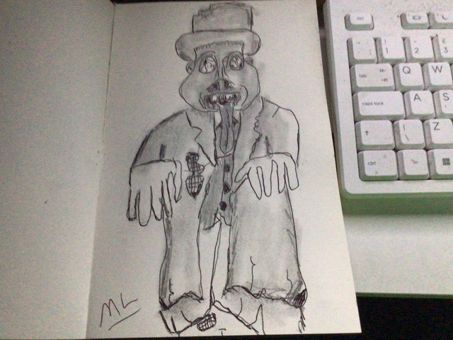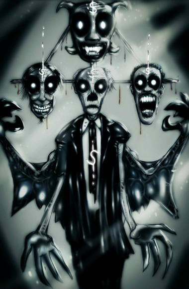I did this sketch waaaaay back... to show my feelings on the evils corrupt businesses and money.More of my work is at www.bizarremoonart.com