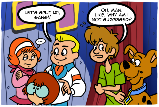 What Shaggy said did catch me by surprise! Of course he was just talking about food, and Velma's reaction is priceless.