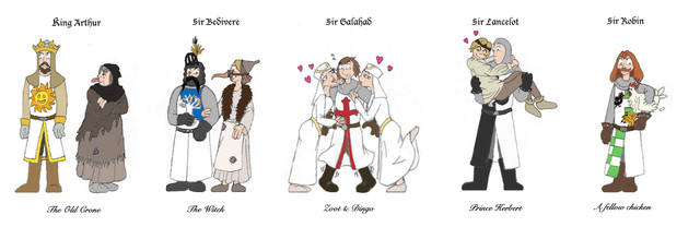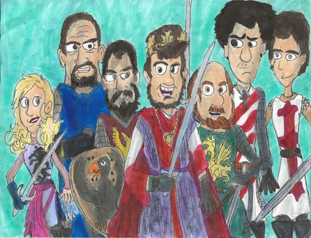 This is a picture of yet another awesome Monty Python movie, Monty Python and the Holy Grail. Here you can see King Arthur and his Knights of the Round Table. Like the Life of Brian picture I made, this too is also made from acrylic paints and outlined in black ink.Related content