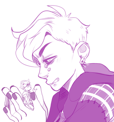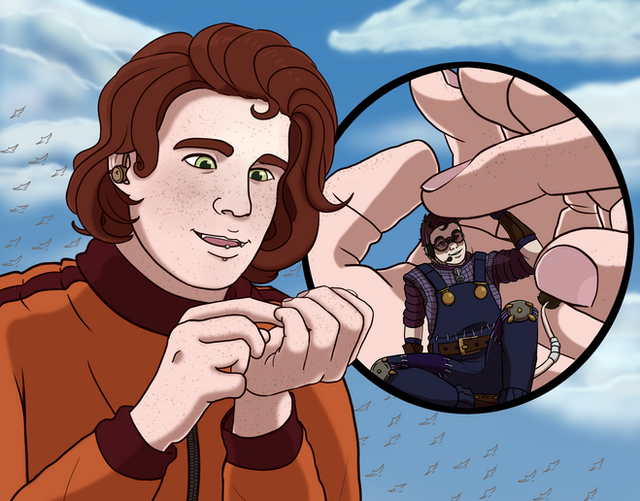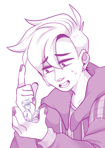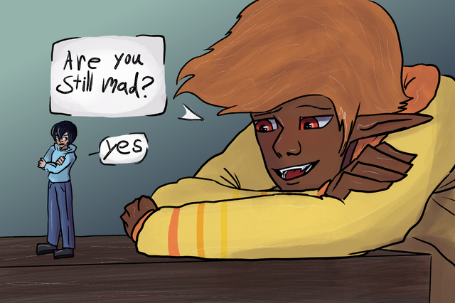 My part of a trade with the lovely Kelly-Clickspring featuring her characters Iggy and Ozzy. And don't worry about Ozzy, Iggy's just making sure they're taking care of themself.Related content