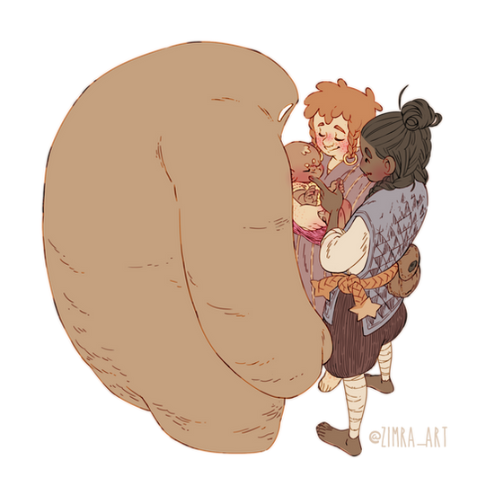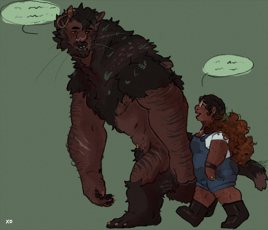 Two of my main characters for my upcoming webcomic, Maira of the Giants. It will be posted on the official web page, Maira-of-the-Giants.tumblr.comIf you enjoy g/t, prehistoric mammals, and LGBTQA+ comics, please check it out! The first installment goes up on October 30th!