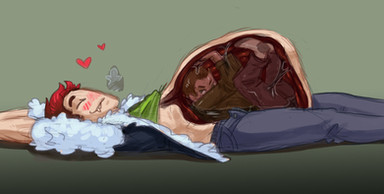 oh yeah hehe, iside his belly. Looks really confy and fun :3