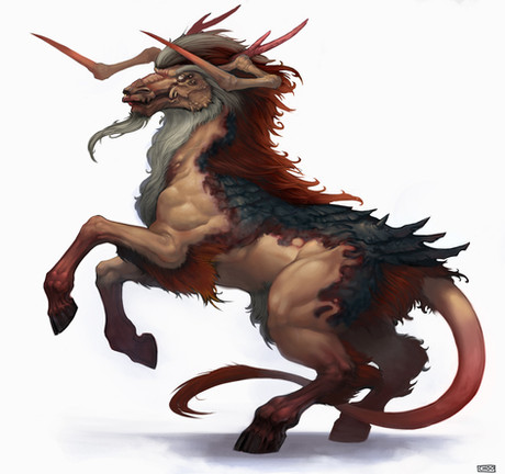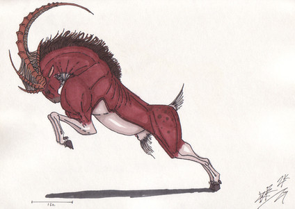 For the Alphabestiary challenge. The creature is the Catoblepas . You can read up on it there. (The words "Alphabestiary" and "Catoblepas" are links. Apparently they're difficult to see.)I like red too much XD