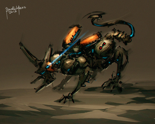 Sorry, can't resist! "There's a good dog" (patting the mech steed on the head). Anyway, keep up the good work. I'm sure you'll get another one like this done in a matter of half an hour next time.