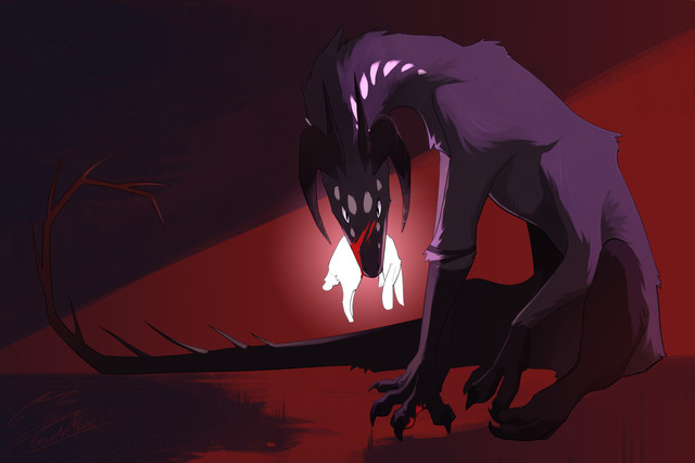 i love seeing how far this telephone evolved!! what a far stretch from a dinosaur to horrific deer monster ahah