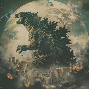 Godzilla in the style of a WWII found photo with some color added in.AI + Photoshop