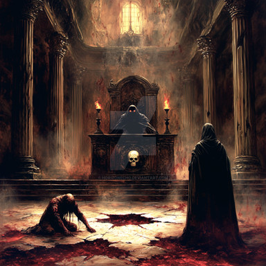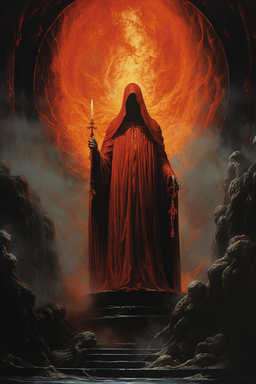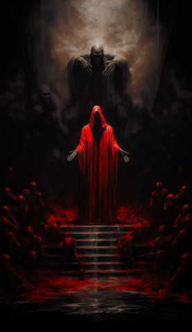 A red robed priest conducting occult rituals.*Produced with AI and altered with Photoshop