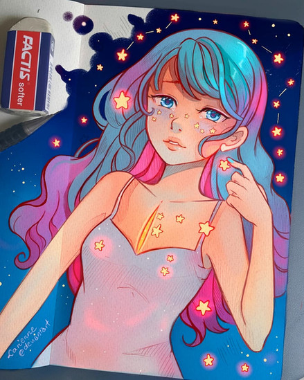 Wait if this is traditional art, how did you make the glow effect on the stars? It would help a lot cuz I struggle with that all the time. And it looks beautiful.