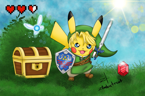 #link #painting #pikachu #pokemon #zelda #art