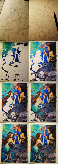 What do you outline with? Is it water colour as well? Or do you use different coloured outliner pens?