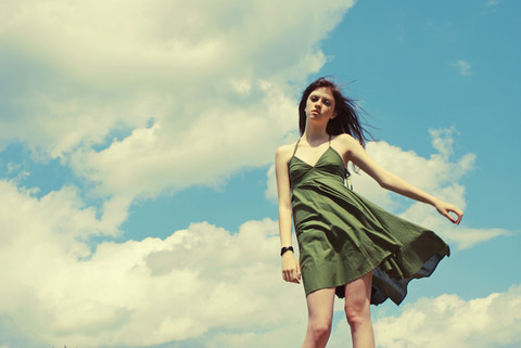Amazing, love the contrast between the model's skin/soft air and the green color