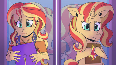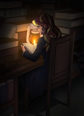 Sunset having learned about the mirrors from Princess Celestia, had decided to continue research despite being warned not too. Upon discovering forbidden books in the library Sunset found a book about the world parallel to Equestria. What surprised her the most was that the people of that world had a similar abilities to the ponies of Equesteria, only rather than being called magic it was known there as Alchemy and it was a force backed by a metaphysical science/mystical art of manipulating and altering matter by using natural energy. It had rules on how it can be used and wasn't a free for all source, it had to be studied diligently.Sunset know believing that this Alchemy may hold secrets to what so eagerly desires begins to read the book in order to further her knowledge. The first chapter " The Law of Equivalent Exchange"