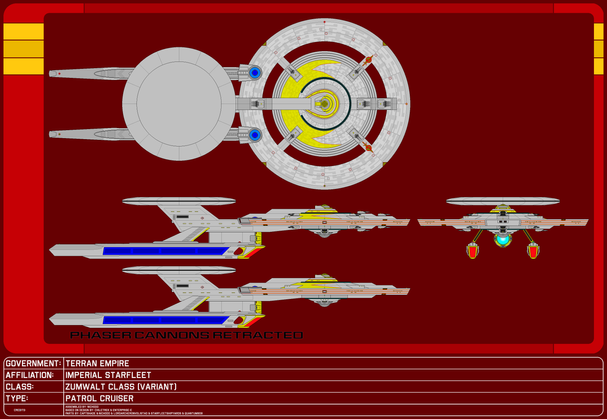 But admist during the 2340s, the Klingons and the Cardassians were starting an alliance, the Empire were starting to see that they were going to be easily overwelmed with the mass of Klingon and Cardassian ships. So in 2344, the Exodeus Class came in for varying refits to battle against the Klingons and Cardassians.