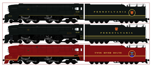 the T1b is a mix traffic 4-8-4 Northen built by the new Pennsyilvania Railroad for many operations and services. The inital T1bs' (top) did not have skirting applied, basically run completely open to the elements. The second itteration of the T1bs' had the skirting applied, this was applied to the inital set of T1bs' for more aerodynamics. When the T1bs were in service, 6 were pulled out of service to be fitted with extensive streamlining to cover up the wheels (also to better wind resistance), the 6 T1bs' along with being adjusted visually entered onto the new 'Pennsyilvanian' Limited service in 2023 (New Age) that started in Philadelphia and ended in Jacksonville, the service would branch-out to other states as well. But, the Great Rail Company ordered 11 T1bs' from the Baldwin Locomotive Devision (BLW resurrected) in March 2025, they're con-currently running Express services on many sub-devisions, some are based at their last stop if the journey takes awhile, additonally corridor water tender is attached to the GRC T1b, which they did from their own shops before the T1b-2s were brought into service.