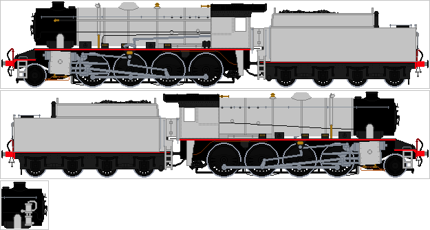 Using 's WD Riddles sprites (the 2-10-0) i replaced the cab with a more adequte cab from 's locomotive parts; gave it some lengthy side tanks and re-incorperated the tender's styling to form it's coal bunker.